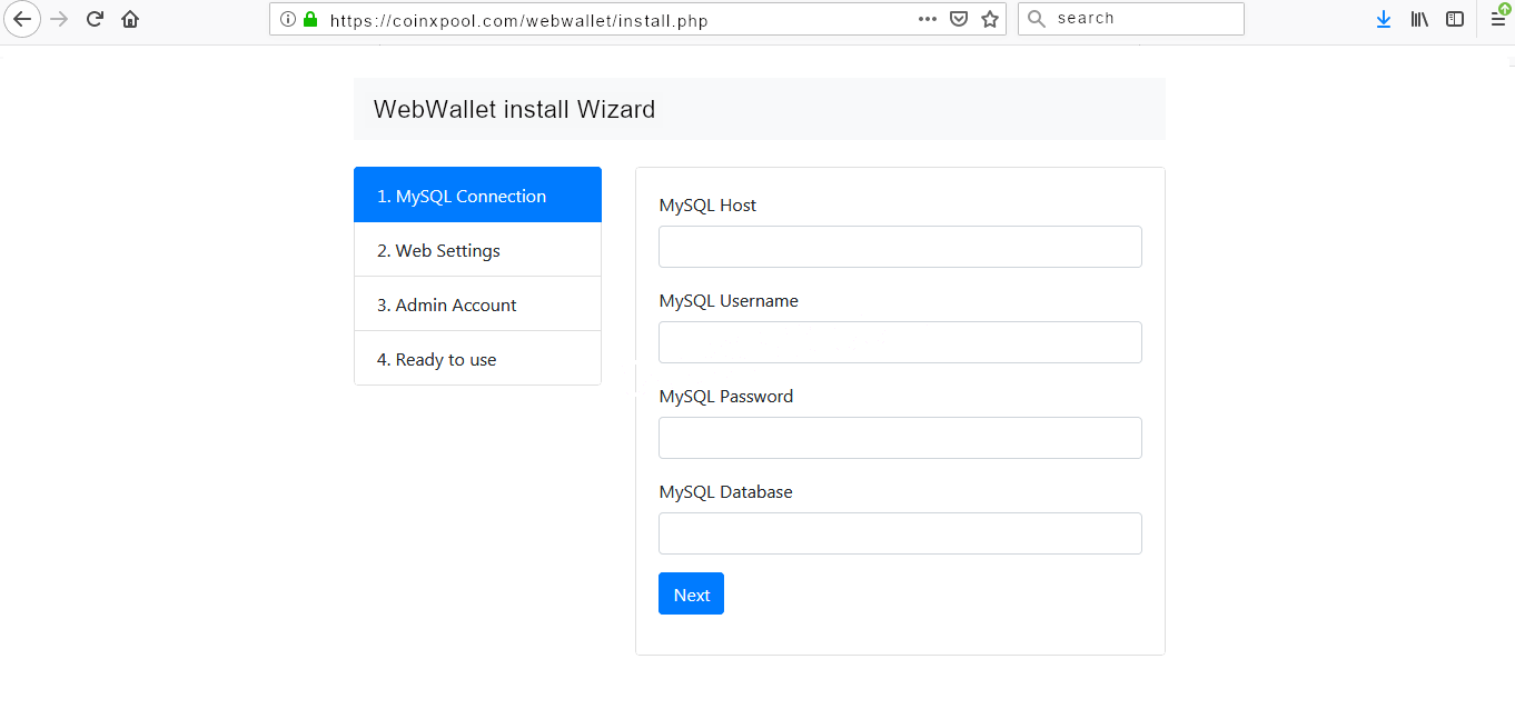 Start your web browser and open your website url address, then follow instructions in Install Wizard. Fill all fields required by wizard.